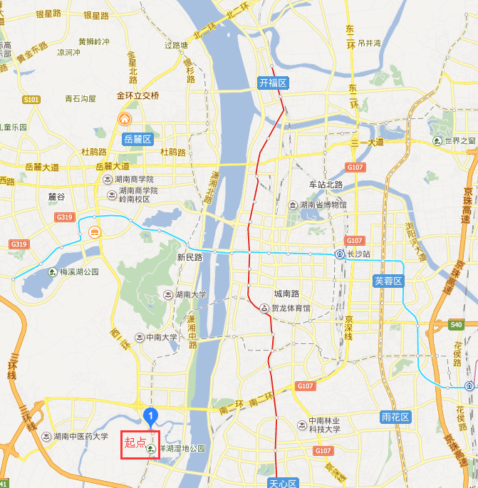 222路 (长湾路滨柳路口——世界之窗)世界之窗、烈士公园、橘子洲桥东方向(高铁站、火车站可乘地铁2号线,湘江中路站下车后转乘此路线);