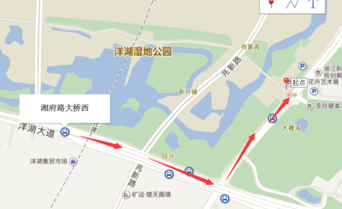 的士、自驾车:可从西二环、潇湘大道、湘府路大桥三方向到达洋湖湿地公园东广场