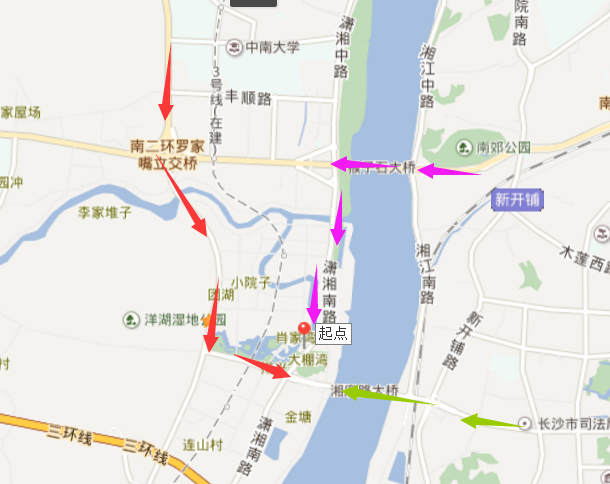 途径区域:南门口、书院路、猴子石、坪塘大道、洋湖新城