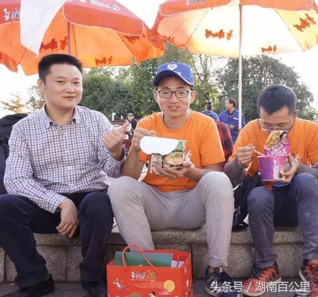 团队中的王童说:第一次走完百里本身就是一种很大的收获,再有就是康师傅旗帜很给力,很吸引眼球,最后每到康师傅的签到点都有漂亮姐姐,帅气哥哥们泡好泡面,简直不能太开心。