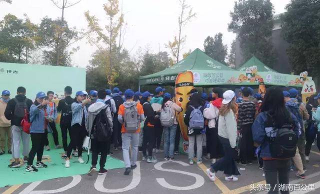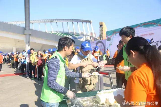 11月4日的清晨,湖南百公里毅行的仟吉展位前围满了毅行者