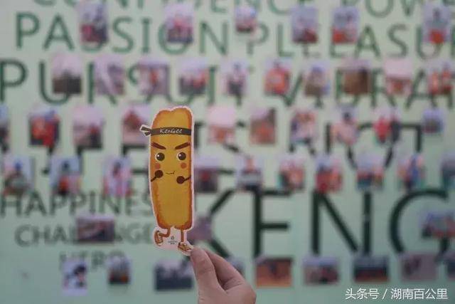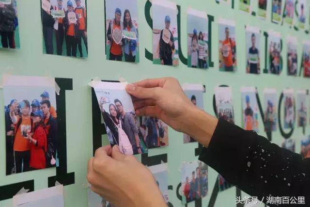 湘潭休整点,仟吉工作人员将在起点拍的一张张照片粘在照片墙上