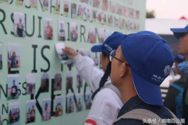 在湘潭休整点的仟吉照片墙,毅行者寻找在仟吉起点展位的照片