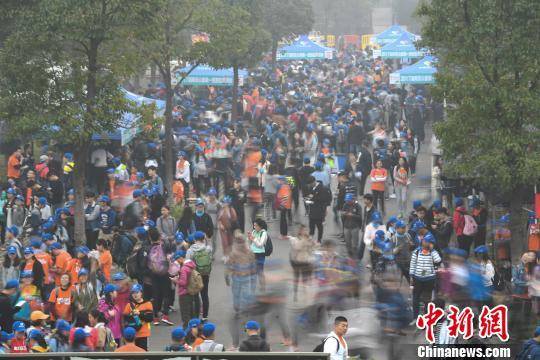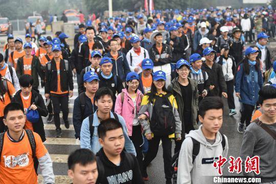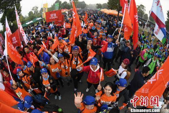 中新网长沙11月4日电 (记者 杨华峰)以“爱阅读,爱行走”为主题的“2017湖南(秋季)百公里”4日在长沙开拔,来自全国各地的1.2万名毅行者从长沙洋湖湿地公园出发,在连续2天时间内,沿湘江上溯,徒步穿越长株潭三市,用行动倡导“快乐阅读”。