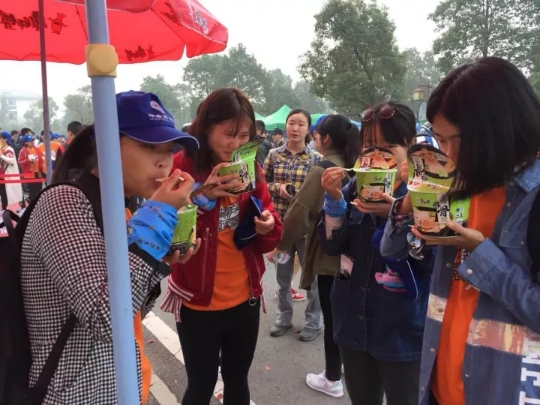 据悉,活动首日,康师傅运动膳食服务区的工作人员凌晨4点就赶赴现场,烧好开水,备好不同口味的方便面,准备接待毅行者,保证起点、第二签到点、休整点每一个服务区都有足量的热乎乎泡面供应给毅行者。