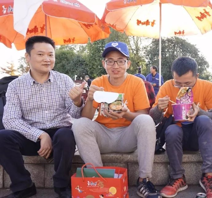 毅行者们出发之前,1.2万名毅行者聚集在起点,记者在现场看到不少人都到康师傅服务区领取泡面,享受这份温馨的关怀。部分毅行者拿到面后也来不及找座位,就原地吃起了这顿营养补给大餐,一时间整个起点吃面的声音此起彼伏,到处都能闻到诱人的面香。