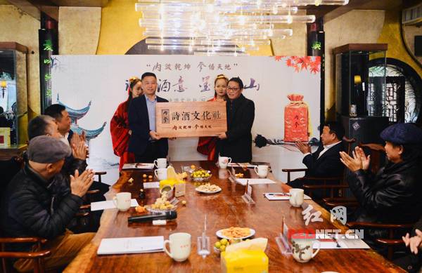 湖南省文联权益保护和行业建设处处长、省文联行业党委专职副书记谢子元为“内参诗酒文化社”授牌。