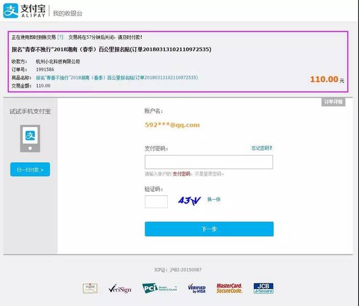 3.根据您选择的支付方式,完成支付,支付成功后,即报名成功。