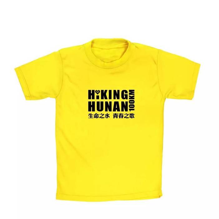 2018湖南(春季)百公里毅行服,以明亮吸睛的黄色为基础色调,撞入黑色的logo字样,形成强烈的反差,拥有极高的识别度,给人以强烈的视觉冲击力。纪念服以“生命之歌,青春之水”为主题,整体风格清新自然,简洁明快。