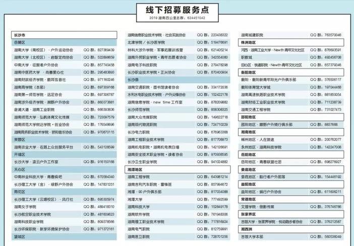 湖南百公里在全省范围内设立了70多个线下招募服务点,他们将为您提供报名咨询、后勤服务、帐篷与返程车预定等服务,请就近加入线下招募服务点百公里咨询QQ群,以便及时掌握活动信息。