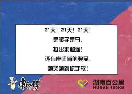 【毅力21天】打卡完成后,可参与湖南百公里三大点康师傅幸运转盘抽奖活动。
