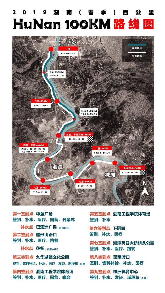 | 第九签到点 | 株洲体育中心 | 11:00—18:00 | 签到补水发证,返程车(自费) | 8 | 1.6 | 84 | 全百终点 |