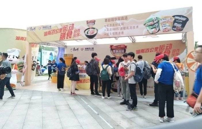 众所周知,康师傅一直致力于提倡健康食品和健康运动的结合,大力推动体育公益事业的蓬勃发展。在此次百公里中,康师傅在起点(中盈广场)、第二签到点(船行山)、休整点(湘潭湖南工程学院体育场)以及终点(株洲体育中心),均设置了高汤能量补给站,为毅行者们全程提供味香浓营养足的膳食支持。