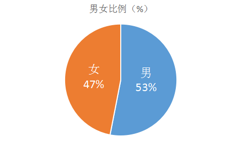 男生占比53%、女生占比47%,