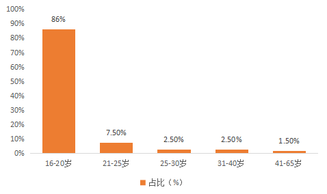 16岁-20岁的毅行者占比是最多的,高达86%,