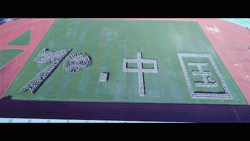 千人同拼“1949”“2019”“70”字样,