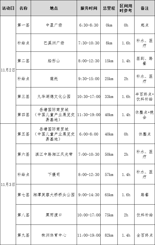 功能:半百终点、签到、补水、饮料补给、医疗、发证、返程车(自费)