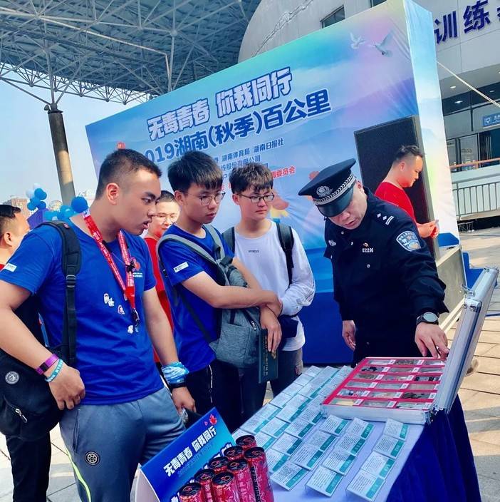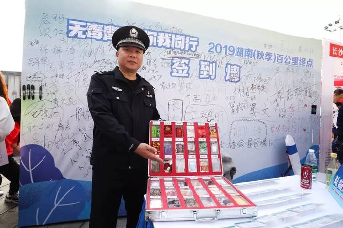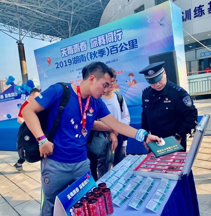 有的全副武装,有的轻装上阵;或结伴而行,或单枪匹马,现场气氛活跃。下午2时30分,身穿印有“无毒天元 幸福新区”红色T恤的志愿者们,浩浩荡荡从马家河街道出发。为增强全社会识毒、防毒、拒毒的能力,此次湘江株洲段毅行专门设计了7个打卡点,每个打卡点都有仿真毒品展示和禁毒知识讲解。“设计很用心、有趣,不仅有禁毒宣传,经过打卡点就给一个‘葫芦娃’贴纸,最后还能领到小礼品。”来自长沙理工大学的蒋同学说,这是他参加的最有意义的活动之一。