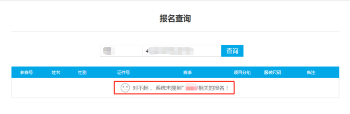 进入查询页面后,输入报名时提交的姓名、身份证号即可查询到自己的参赛号及报名信息。