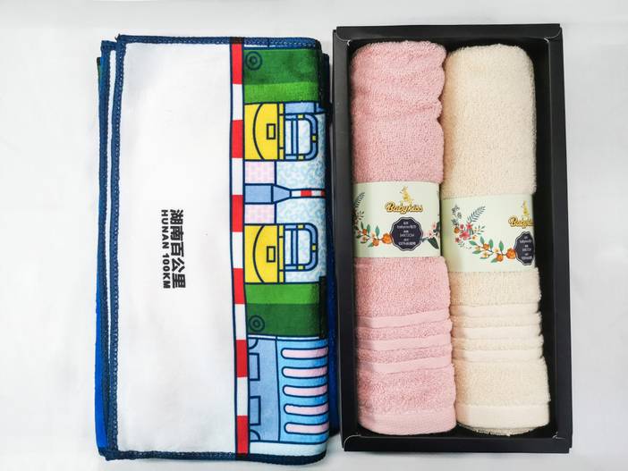 节水文创笔记本、百公里纪念版毛巾、头巾