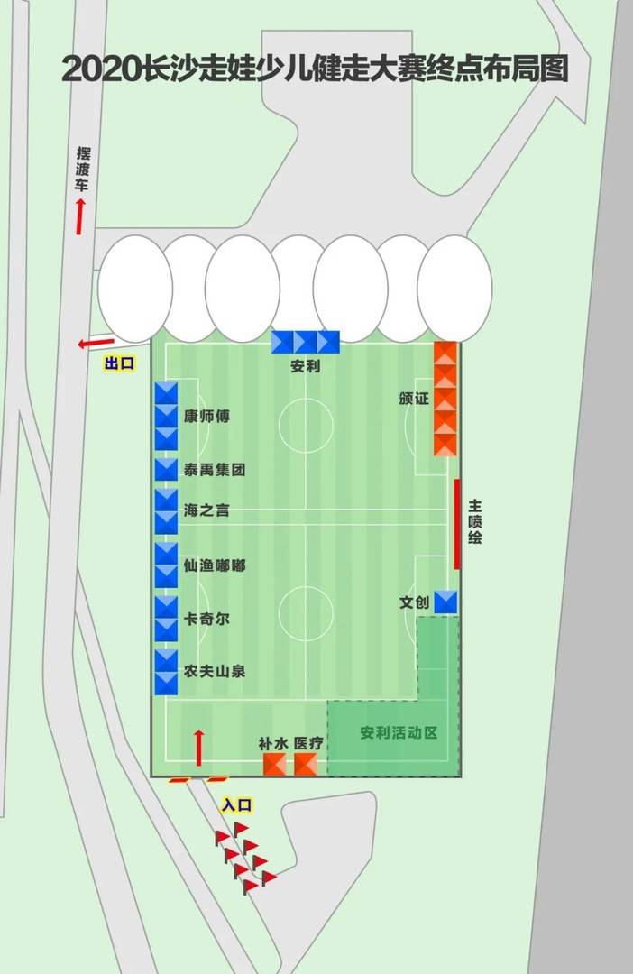 图为终点布局图。本届走娃终点位于潇湘风光带风光足球场,详细信息如上图。