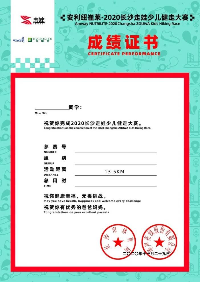 中将组第4-150名小将组第4-100名所有完赛选手完赛证书一张+长沙走娃奖牌一个