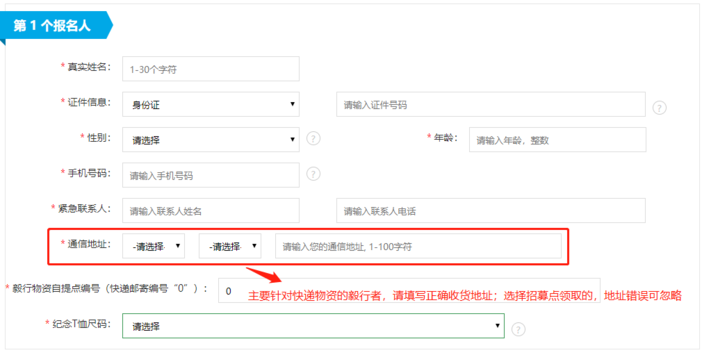情况1:如在报名时选择了招募点领取物资,通信地址填写错误可忽略,招募点编号填写错误请联系客服退款重报。