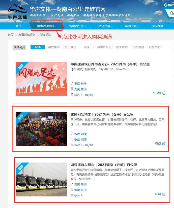 官网提供休整点帐篷租赁与返程摆渡车购买通道,请毅行者们按需购买。