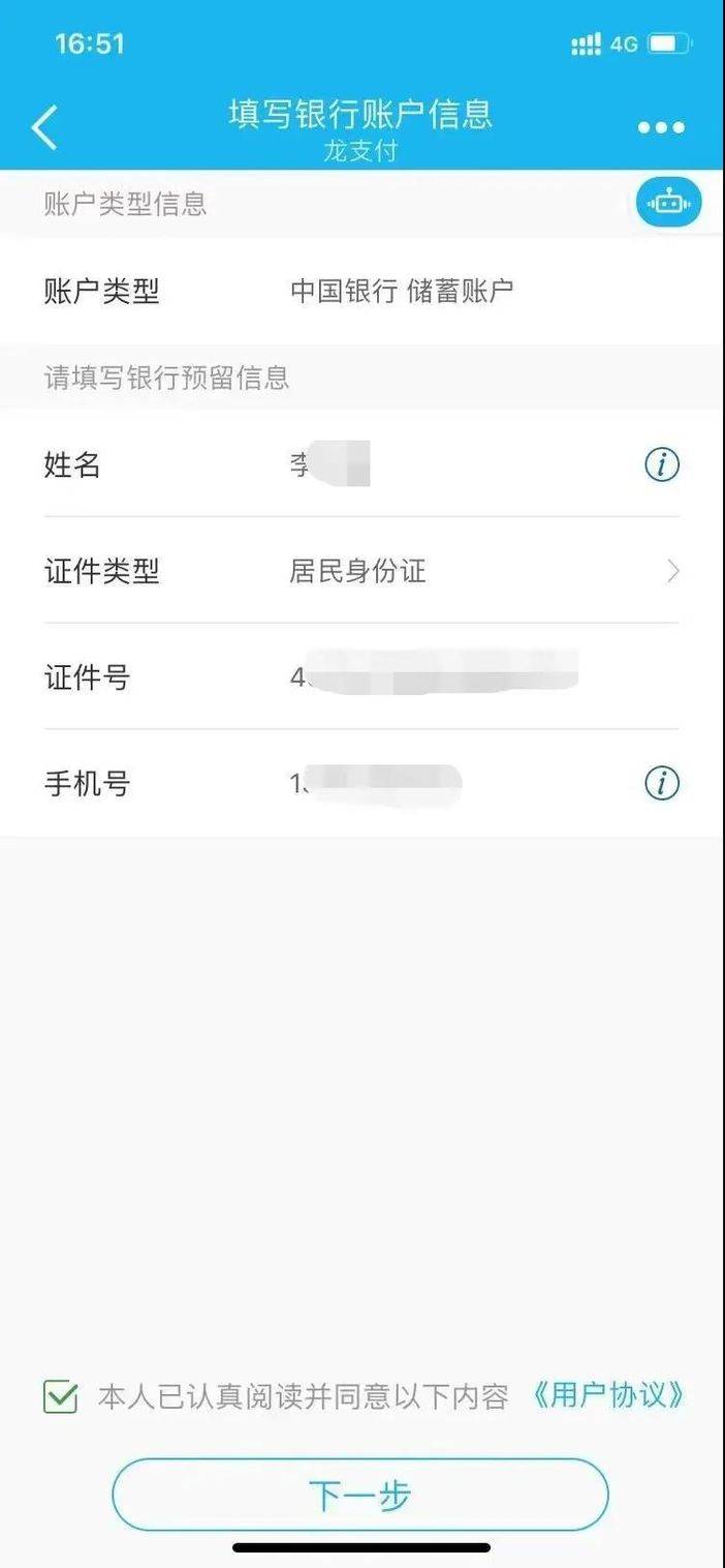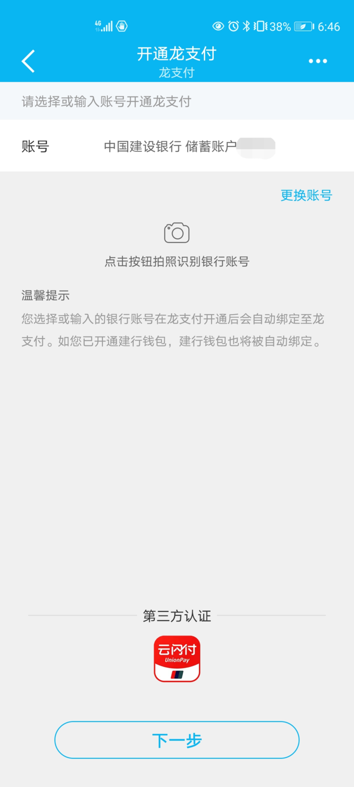 步骤2,有建设银行卡的,只需根据系统提示,输入建设银行卡卡号→点击“下一步”按钮→设置支付密码,确认密码后点击“完成”按钮,龙支付开通成功。