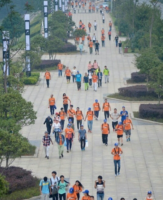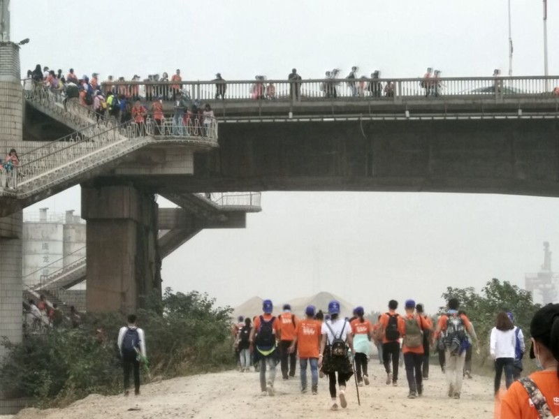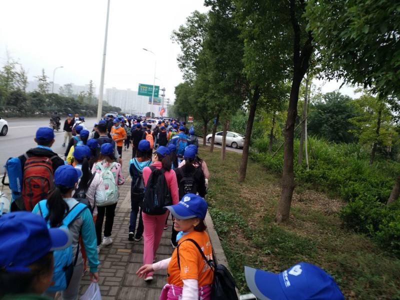 第一天早上我们五点半起床,六点一十北门集合出发,七点钟到达洋湖湿地公园参加开幕式,完成起点签到后开始了我们的毅行征途。上午九点,起点签到全部结束,此刻,毅行途中,有一万人在与我们同行。