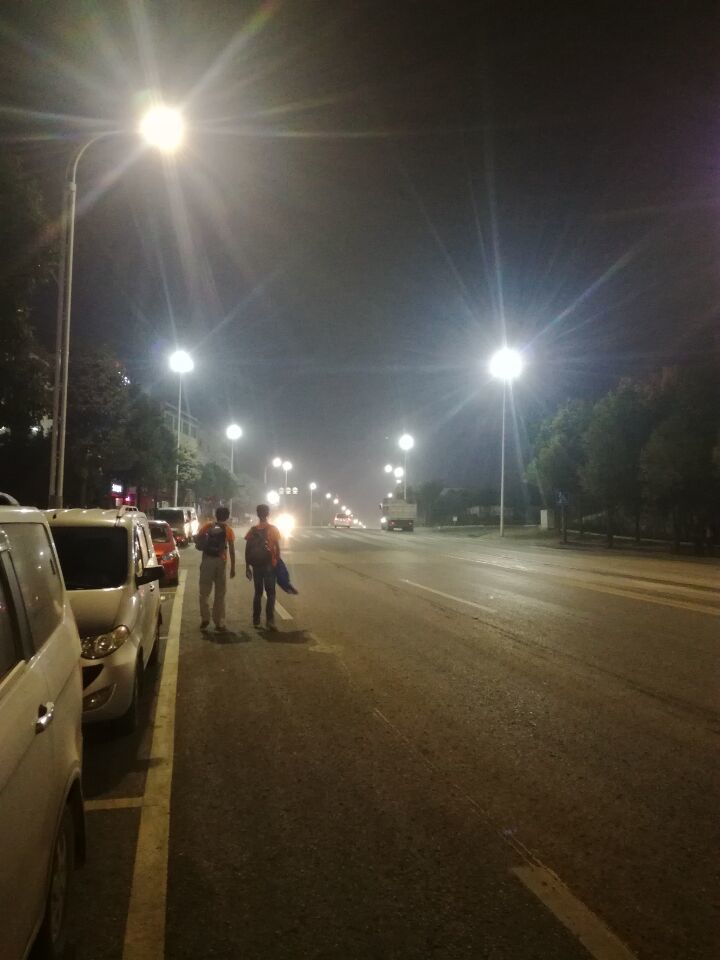 我仍记得在第一天晚上,我们走过了湘潭第四座大桥,横穿大半个湘潭却还未到达休整点,体力感觉将至极限。我趴在江边的栏杆上抱怨道:路漫漫其修远兮,怎么还有两公里?这时旁边正在锻炼的大叔看了我们一眼,说:“两公里能有多远?天将降大任于斯人也,必先苦其心志,劳其筋骨,饿其体肤,空乏其身……”