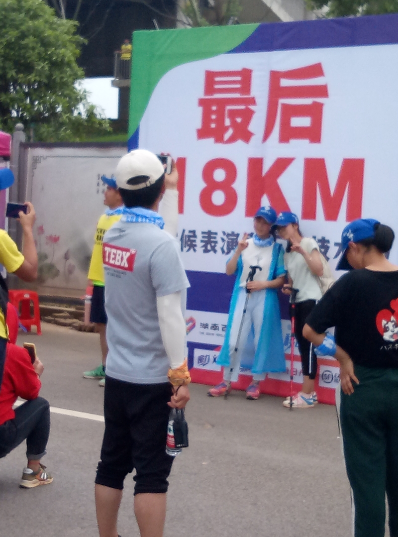 “我昨天中午就想放弃了,遇到了几个找我照相的湖大的同学,我就跟着他们,边走边聊,把昨天的48km走完了”毛军对着我说道,“我觉得有人陪着走才更有动力,我真的很佩服你昨天自己走完半程。”