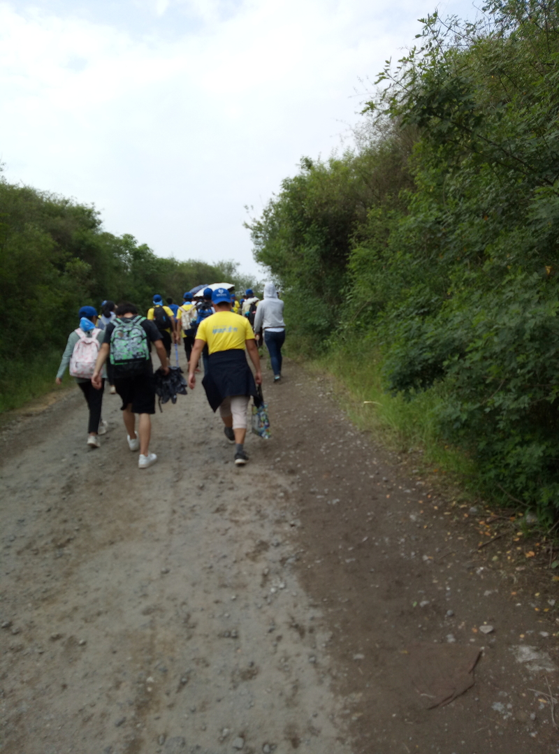 最后的十六km,天空下起了小雨。雨越下越大,我举着伞在沉默的人群中沉默的走着。到了最后的行程,毅行者们都很疲惫,在雨中沉默着行走,耳边是雨落的声音,却显得很寂静。突然想起一句话你的沉默,自有力量。是的,我们沉默着行走,但沉默的每一步都表示这我们的毅力和心中的力量。