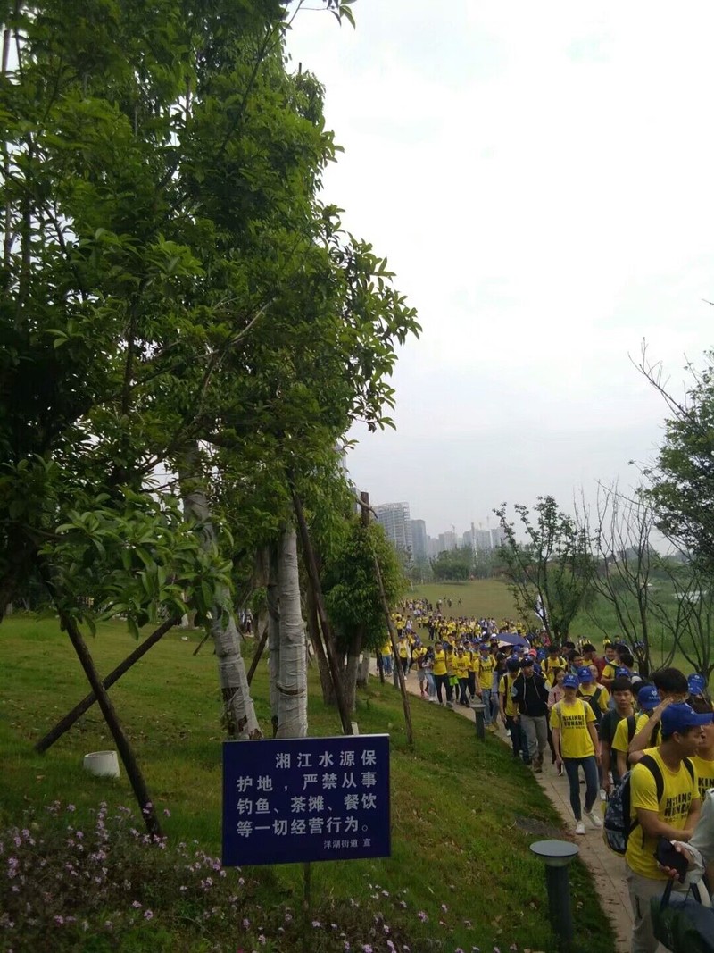 也许你听过这个活动很久了,在湖南它11岁了。 在这里,我把我的百里行程说给你听。 看着这块奖牌,就会觉得很值。Finisher!怀着一颗期待又排斥的心,就又报名了百公里。这一次我们的起点是中盈广场。依旧可以把信寄给未来的自己,就像“熊猫慢递”一样。蓝帽黄衣蓝头巾,顶着骄阳穿雨衣,泥潭水坑任你行,走完全程算你狠。你们都说,你这是花钱买罪受,你不是去过一次了吗。我说,就再走一次,这不一样。你们见到的是周六一大早离开温床的我和周日天黑倦怠归来的我,带给你们的感觉是这趟徒步所带来的无尽疲惫。但后来我又满血复活的发了朋友圈,你们竟推测我还能再走两天。中国好室友,下次,那咱们一起呗! 当然我也很明白你们的