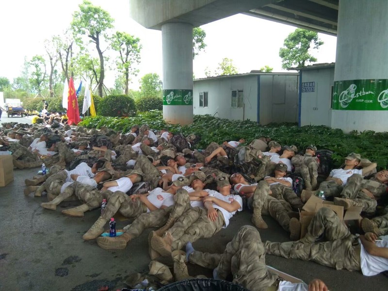 说是要下雨,用洒水车的音乐叫我们起床。这么多人睡着呢。