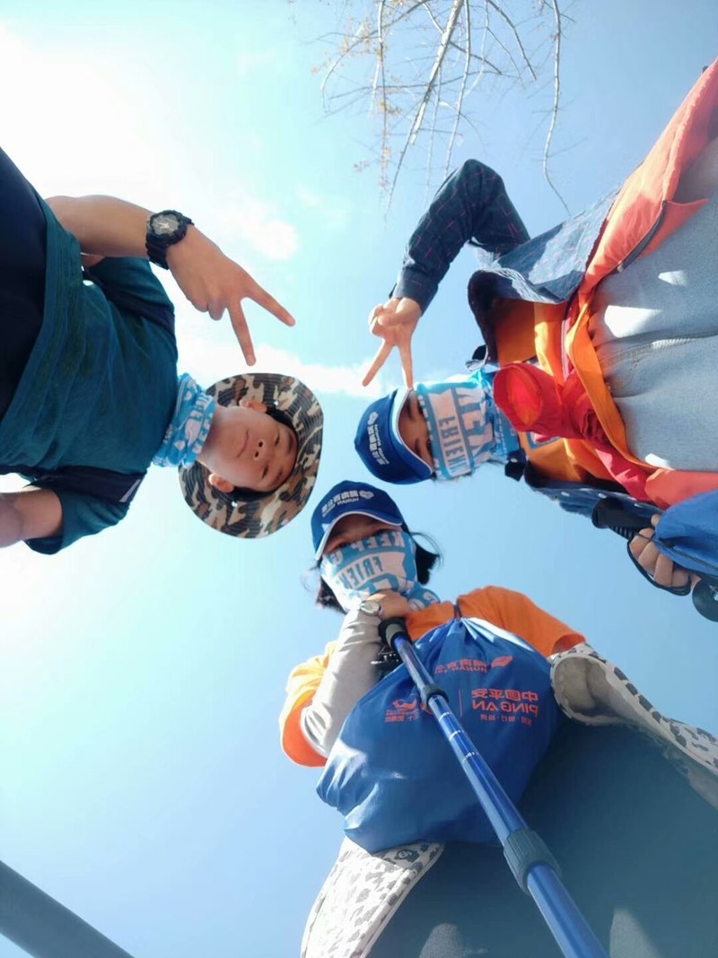 以至于前半段有位大爷悠闲的骑车经过我们时用纯正的长沙话说,"你们是最后一个,后面莫得人啦"。可我们也就只是笑笑。依旧边走边欣赏美景。导致我们在去四签的路上边走边跑,使出最后的力气用两小时走了10公里,终于在7点50的时候赶到签到点。很多看似不可能的事情只要努力一下就会有出乎意料的结果。