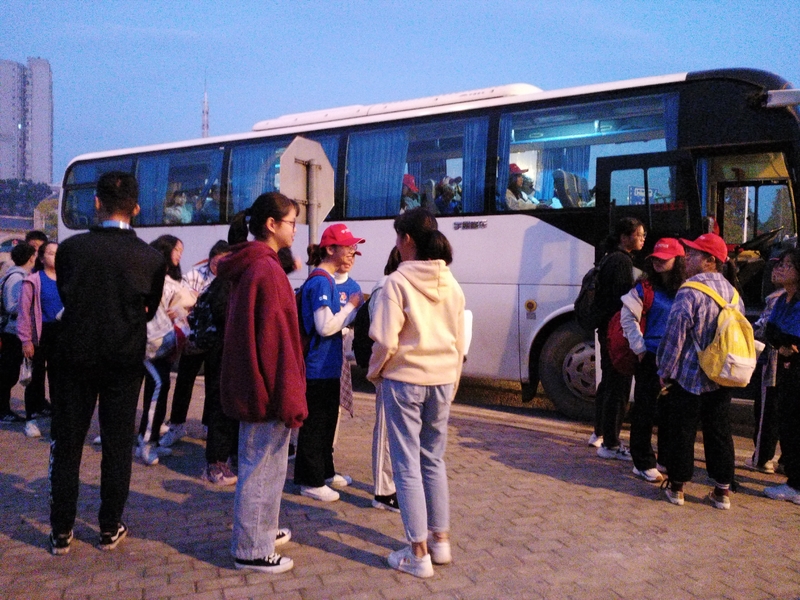 周六的清晨,闹钟一响我就醒来了,轻手轻脚下床完成洗漱,慢慢推着行李,轻轻打开门,踏出新一天的第一步。在校门口联系好送站的大巴,并把报名乘坐大巴的花名册拿出来准备签到工作。也感谢帮忙的玉敏、叶华还有佳英几位学妹,帮我维持秩序和管理签到。