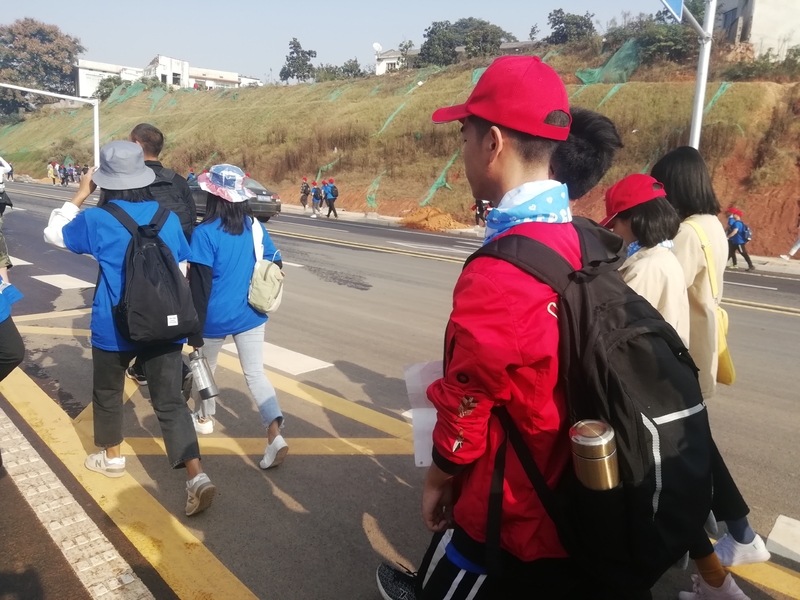 我呢,走在曾经走过的道路上,望着熟悉的风景,但曾经陪伴我走的人现在却不在身边了,多少还是有些感慨吧,伴着悲情与念想,想着这终究不过是一个人的朝圣罢了。但晓龙他们的陪伴,还有这次百里毅行的不同主题和活动,让我感到了温暖和丰富,虽然越走着脚就越痛苦,还是一路坚持下去。
