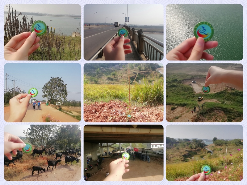 一个人走的时候,起先有些难过,腿也很难受。明媚阳光照在身上暖洋洋的。树影婆娑,微风轻起,心旷神怡。慢慢走到了小路上,身体渐渐疲惫,心中也多了几丝抱怨:怎么走的那么远啊,真是折磨人,脚像针扎般的痛,现在我终于体会到小美人鱼和王子跳舞时的痛苦了……但在调整休息和放慢速度后好受了不少,也渐渐地听起歌和看起风景来,在耳朵里唱着的喜欢的歌,和在眼睛里缓慢的变化的风景。走累了有人听你抱怨,抱怨完,休息一会又继续前行。后面感到了无聊,给自己找了一份差事:一个人走的时候,把远足协会的徽章拿出来做一些有趣的拍摄吧。走到一个认为风景较为有意思的地方,就用手把徽章升起或者摆放,拍了许多图片,也许回到学校以后可以用作社团的宣传。