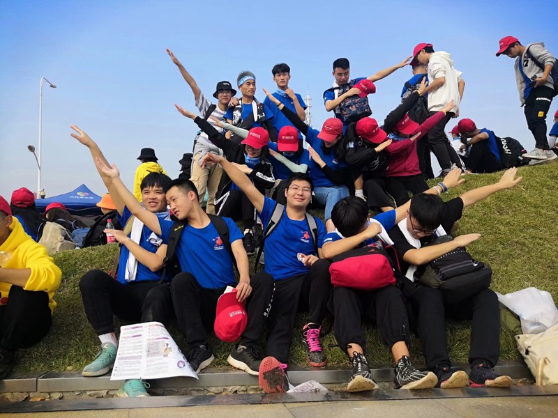 这一路上真的碰到了特别多厉害又有趣的人,碰到了同班的雅琪、明珠、康老弟,锦莲,曼妮,忠良,还有认识的部门同事凯宁、雅丹,以及路上相逢的其他学校的同学,一路上,互相搀扶、加油鼓劲,汗水浸湿衣裳,却没有放弃,尘土飞扬,我们一起坚持,一起陪伴着毅行,这交织起来的是我们每个人的回忆