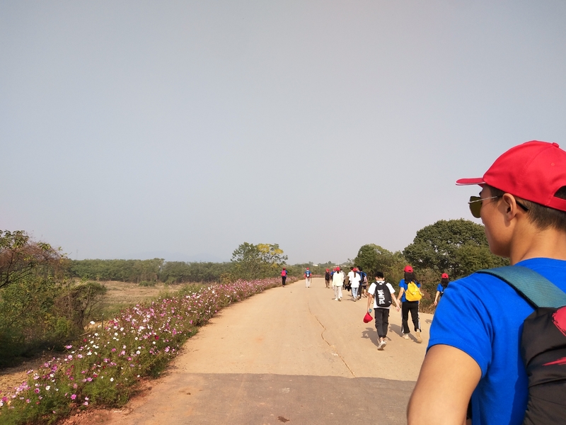 后面的路程,我一鼓作气,硬生生的拖着快废掉的腿脚一路小跑,赶超了不少人。可能是临近终点,同时也走进了乡间小路,我心情渐渐的惬意起来,路边的景色多么可爱!走上一条两边开满花儿的小道,一位帅气的小哥哥似是自言自语又似是向同行的人说,这些花儿莫不是为了我们这些毅行者特地开放的吧。我竟莫名的觉得真是很美好又有点小感动,路边的花,不仅为我们而绽放,还为这大好的祖国而绽放啊。