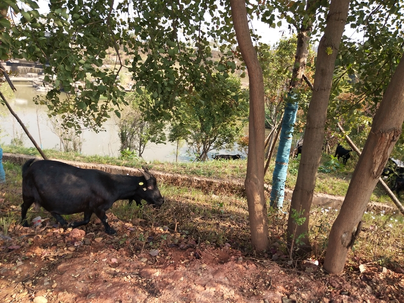 但走着走着我发现jiojio开始有些不对劲了,嗷!穿错了鞋加上没有做好保护工作,慢慢的慢慢的我的脚上磨出了水泡。也就在这之后的路途,我的脚步越来越沉重,而且得时不时的停下来释缓一下备受折磨的脚。所幸江边有一段青草地路,踩在软软的草坪上,看着湘江上时不时驶过的货船以及岸边吃着青草的牛羊们,我没有感到特别的难受,只是脚步异常沉重。就这样一直走啊一直走……