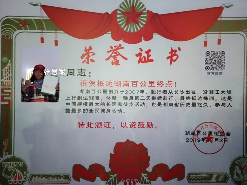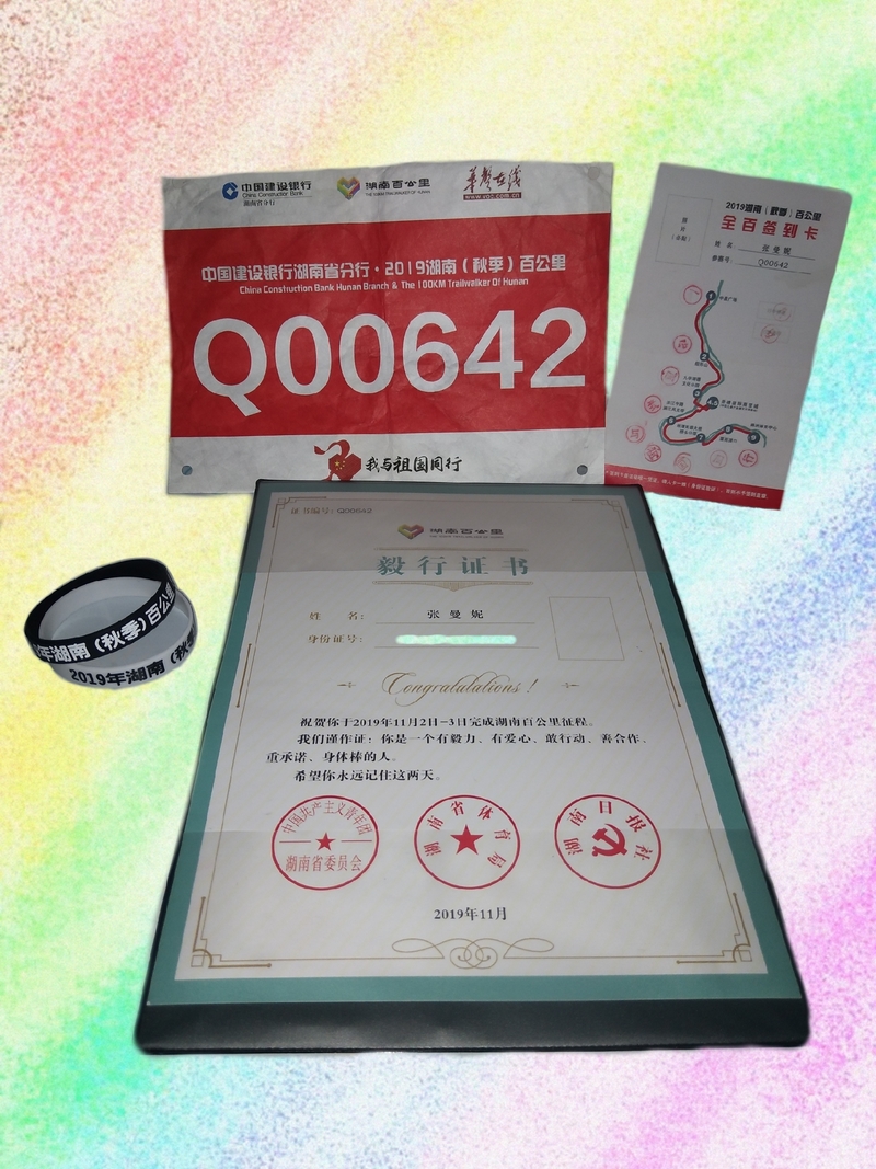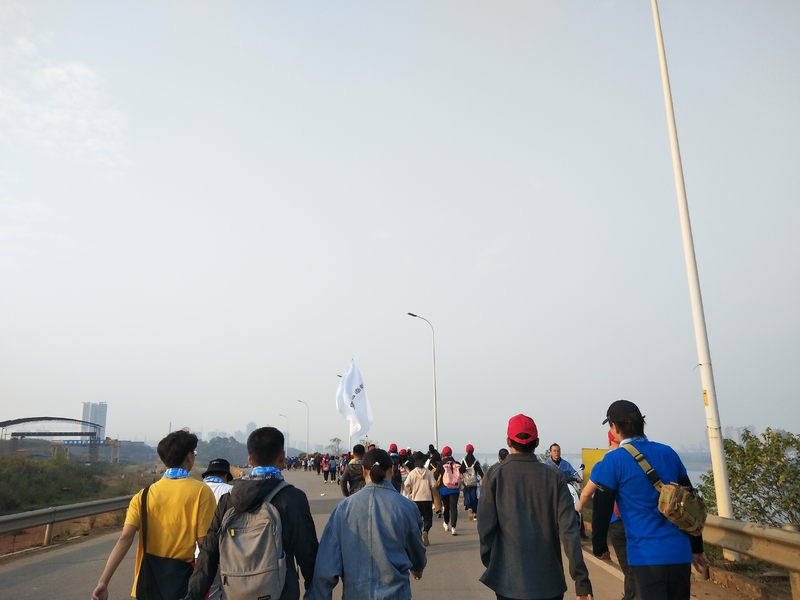 文章末还是要感谢一路上给我力量的各位,比如被我拉下坑同行的兄die,我知道他明明可以甩开我冲到前方去但他没有,当我忍受不了疼痛慢下来,他就停下来等等我,当我状态转好了,他又带着我全速前进;比如一直作为云队友的老向,他作为前锋,一路上听着落在后面不知道多远的我逼逼叨叨说了不知道多少废话,还给我根据路况预估到点时间,鼓舞着我有信念有力量支撑下去;比如一路上无数次引起围观的各路兄弟连,他们穿着行军服负重前行,有时高喊着口号齐步前行,有时又一齐放声高歌,他们的脸上从未写过放弃,他们作为标杆与;比如一路上的志愿者们,他们都在尽职尽责的工作,有些坚守在签到点、补水点、医疗区,有些在拐点处为我们指引方向,有些面对太阳站着笔直的军姿,有些摄影师一路上抓拍毅行者的风姿……每每经过他们,我们都会由衷的道一声:辛苦啦!而他们也回报以甜甜的微笑以及一句鼓舞人心的加油;,还比如来自远足协会、第一师范、湖南各地、甚至来自全国的心连心的各位朋友给予的精神上的鼓劲。我知道,我正与你们同行着,与这一万二千多人同行着,当然也正如这一期的主题:我与祖国同行!不管怎样,有你们,前行的脚步不会停止,心中的信念不会磨灭!
