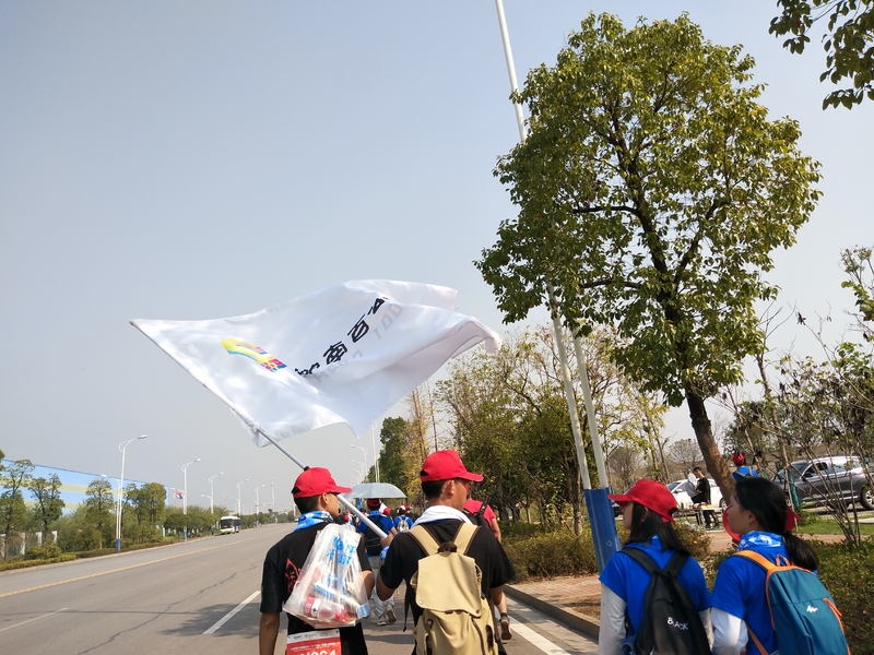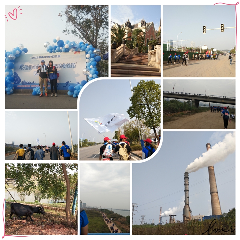 后面的路程,我一鼓作气,硬生生的拖着快废掉的腿脚一路小跑,赶超了不少人。可能是临近终点,同时也走进了乡间小路,我心情渐渐的惬意起来,路边的景色多么可爱!走上一条两边开满花儿的小道,一位帅气的小哥哥似是自言自语又似是向同行的人说,这些花儿莫不是为了我们这些毅行者特地开放的吧。我竟莫名的觉得真是很美好又有点小感动,路边的花,不仅为我们而绽放,还为这大好的祖国而绽放啊。 文章末还是要感谢一路上给我力量的各位,比如被我拉下坑同行的兄die,我知道他明明可以甩开我冲到前方去但他没有,当我忍受不了疼痛慢下来,他就停下来等等我,当我状态转好了,他又带着我全速前进;比如一直作为云队友的老向,他作为前锋,一路上听着落在后面不知道多远的我逼逼叨叨说了不知道多少废话,还给我根据路况预估到点时间,鼓舞着我有信念有力量支撑下去;比如一路上无数次引起围观的各路兄弟连,他们穿着行军服负重前行,有时高喊着口号齐步前行,有时又一齐放声高歌,他们的脸上从未写过放弃,他们作为标杆与;比如一路上的志愿者们,他们都在尽职尽责的工作,有些坚守在签到点、补水点、医疗区,有些在拐点处为我们指引方向,有些面对太阳站着笔直的军姿,有些摄影师一路上抓拍毅行者的风姿……每每经过他们,我们都会由衷的道一声:辛苦啦!而他们也回报以甜甜的微笑以及一句鼓舞人心的加油;,还比如来自远足协会、第一师范、湖南各地、甚至来自全国的心连心的各位朋友给予的精神上的鼓劲。我知道,我正与你们同行着,与这一万二千多人同行着,当然也正如这一期的主题:我与祖国同行!不管怎样,有你们,前行的脚步不会停止,心中的信念不会磨灭! PS:毅行后续,一大波琐碎事袭来,心力交瘁熬夜爆肝的我一度怀疑自己将在某天突然离开这个美丽的世界。所幸至今为止没有发生(•́汗•̀ ٥)时间让大家身上留下的“百里印记”渐渐恢复完全,也没有丧尸步出现在校园,大家一个个都生龙活虎的驰骋在自己的那一片天地!而下一次的百里又会怎样,仍将是一个未知数。守着这份初心,坚持走下去!毅行记,未完待续……
