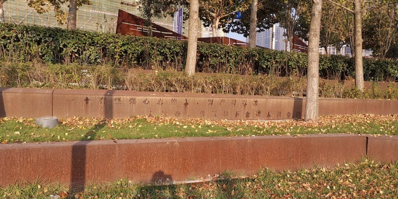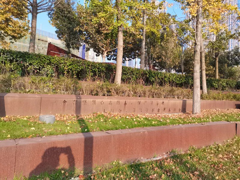 路边雕刻了雨果的:一个有坚强心志的人,财产可以被人掠夺,勇气却不会被人剥夺的。感觉是镂空雕刻,不晓得是怎么雕上去的。