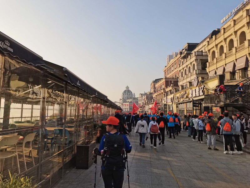 Smile想到了伟人的《沁园春长沙》,于是我们两人在行进的人群中,高声朗诵了一遍又一遍,声音激昂,疲劳似乎一扫而光,也果然走得更快了些。