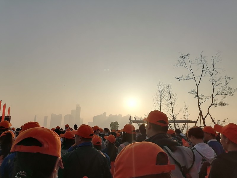 提前一天从株洲出发,到达长沙岳麓区时已近是晚上了,稍作休息,11月13日凌晨六点我们便到了滨江新城市民中心广场。在观看了表演和关于节水知识、毒品知识的讲解后,7:35我们迎着升起的太阳出发啦!