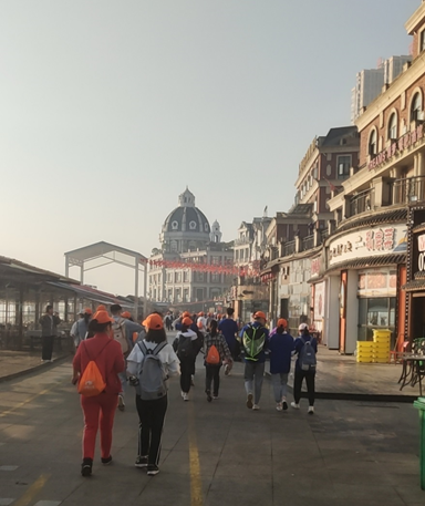 真正的考验开始了,古人云:“行百里者半九十”,最后这5公里注定格外艰难。天色渐晚,气温也低了下来。最让人折磨的不是寒风、落日、饥饿、酸痛,而是出租车司机的热情邀请:“上车吧!天都快黑了,6点就没有奖牌了”;“上车把你拉到终点,早点回家休息吧”。我们自动屏蔽了吆喝声和鸣笛示意,这一次,绝不能留遗憾!在同行伙伴的相互鼓励下,我们一起坚持到了最后,圆满完成了这次毅行。
