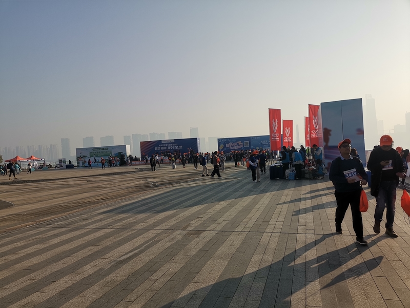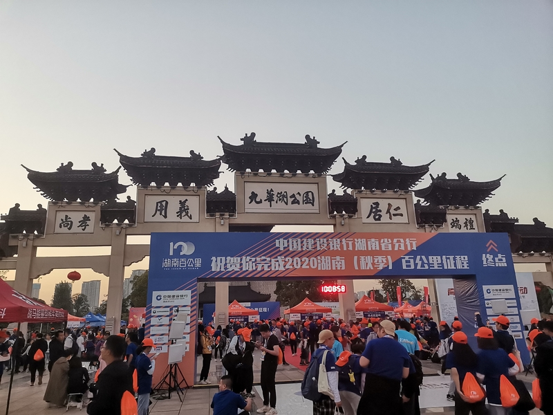 庚子季秋九月廿九日,是日秋高气爽,景象怡人。百里毅行,历新冠疫情之考验,迎九州奋力送瘟神,又得举办。五千余人,清晨即起,赶往滨江新城市民中心广场。但见往来人流,橙帽蓝巾,去浪奔涌,似带延伸,依沿湘江,非凡气象。