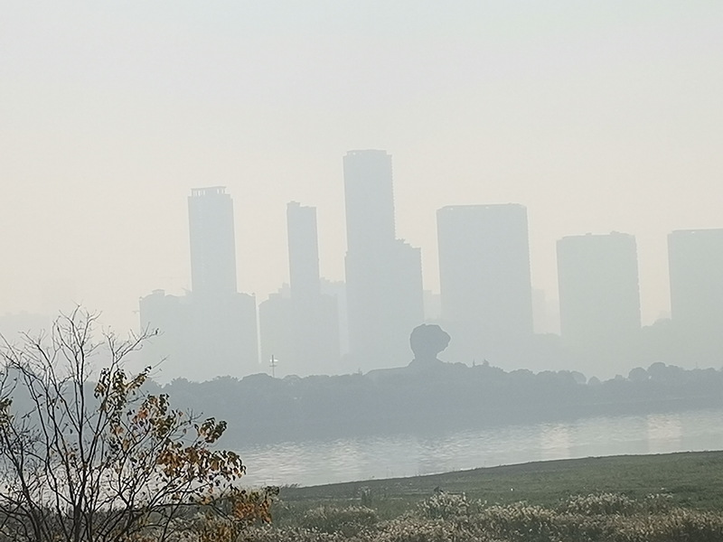 速行之,徐行之,行之渐远。两股渐生酸痛之感,双胫如坠石权,遂稍歇。江侧芦苇洇黄,褐穗顶其峰。枫榉树冠,碧绿染鹅黄,多缀绒红。人行其下,颇显秋韵。待已觉安适,继续前行。适时日已高升,江上雾已散尽,水汽消弭。而行人汗浸橙帽,濡湿蓝巾,眼角挂珠,双臂积湿。尽如此,仍未停。穿小径,过古门,曝骄阳,蔽阴翳,抵至湘府路大桥,稍歇补水。顾周遭人等,或短坐闲谈,或身体张伸,或匆匆前行,不一而足。吾自不敢久歇,仍沿江畔步道前行。复行十余里,至巴溪洲广场。适时日正中,行人沿坐桥侧,饮食补水。湘江于其侧静流无声。